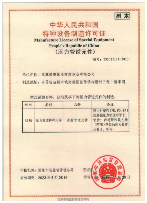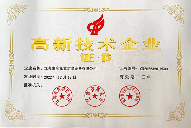 江苏聚隆氟业防腐设备有限公司座落在具有东方湿地之称、丹顶鹤与麋鹿的故乡盐城,公司总部位于江苏省盐城市伍佑工业园区,占地约10200平方米生产聚四氟乙烯管材,四氟填料(四氟鲍尔环、四氟拉西环)及各类四氟制品,集研发、生产、销售为一体的综合性企业。公司拥有齐全的生产和配套测试装备,并汇聚了一大批技术人员,具有强大的设备、工艺研究能力和产品创新能力。公司本着质量、信誉为将来能够更好的与国际接轨,公司先后制定了一系列严格规范的规章制度和企业发展前景,使公司的企业管理和产品质量更上新台阶……